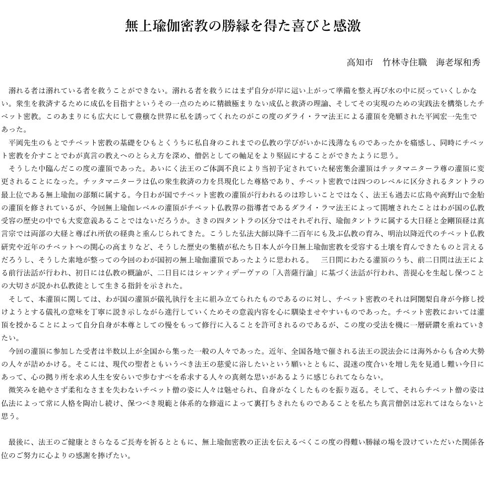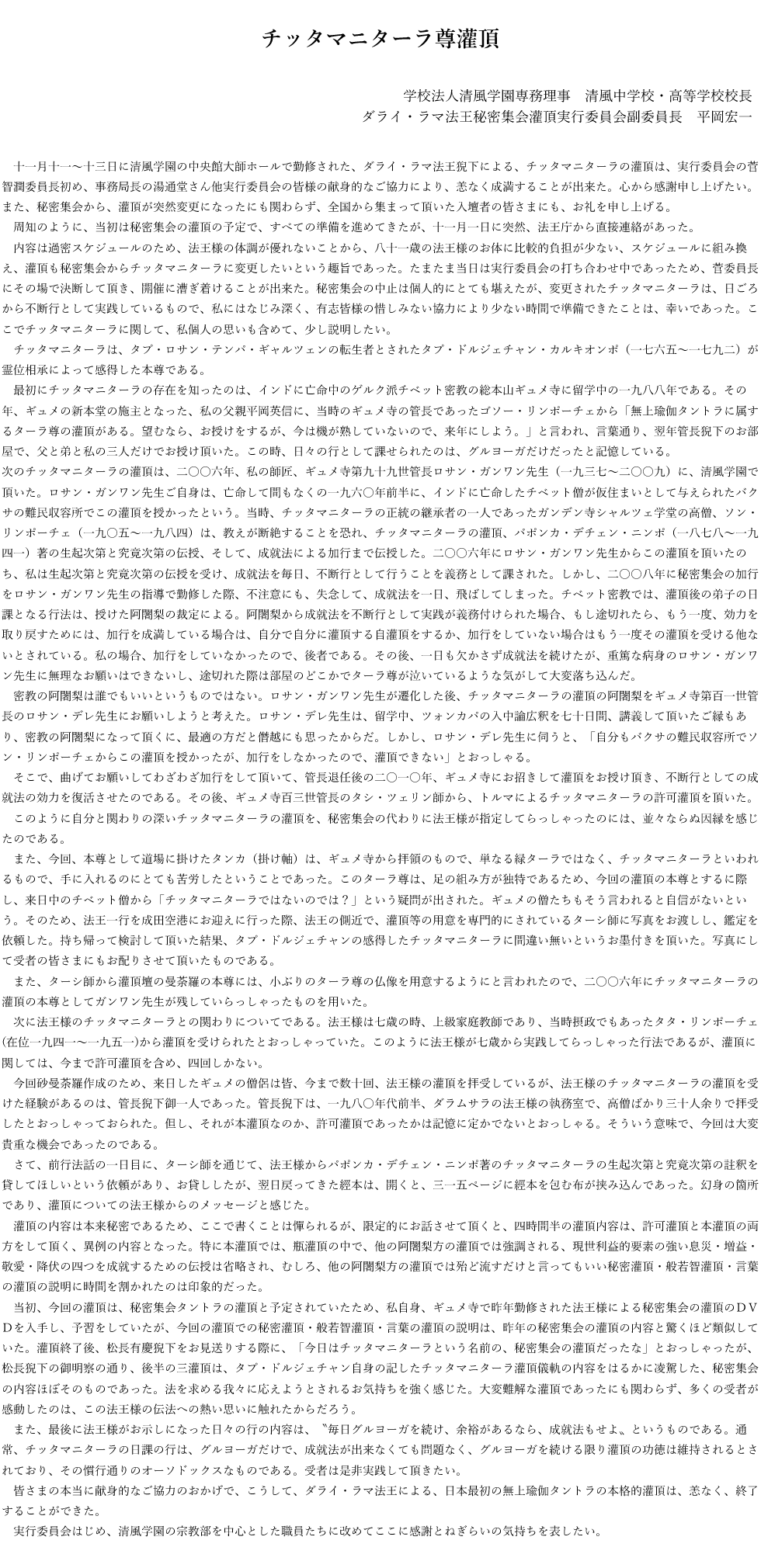 ダライ・ラマ法王チッタマニターラ尊灌頂 収支報告書
